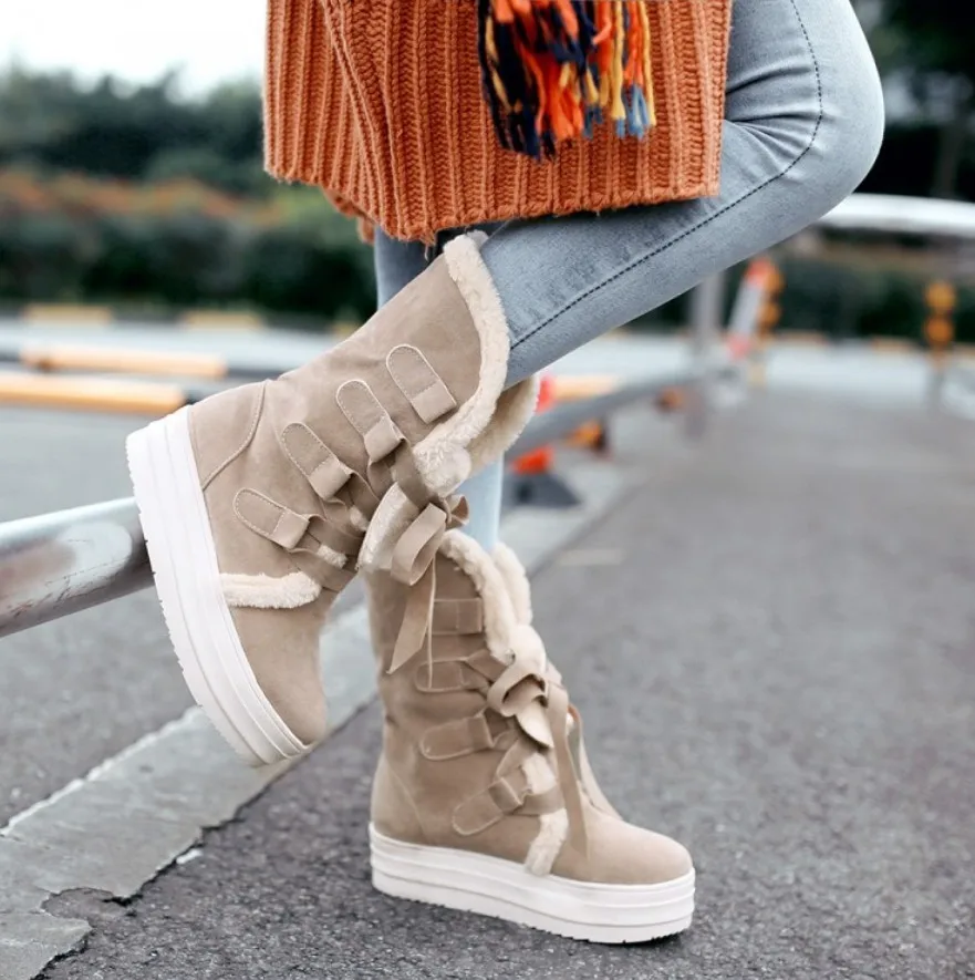 Document Review : 2016 women girl winter autumn warm snow boots increasing height wedge platform mid calf boots booties ski creepers plus size 43