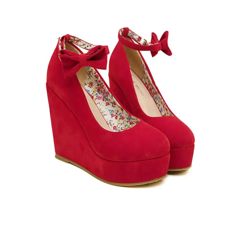Main Features : Low Price 2016 New Sexy Women Fashion Buckle ladies Shoes Vogue Wedges RED APRICOT BLACK High Heels Platform Pumps